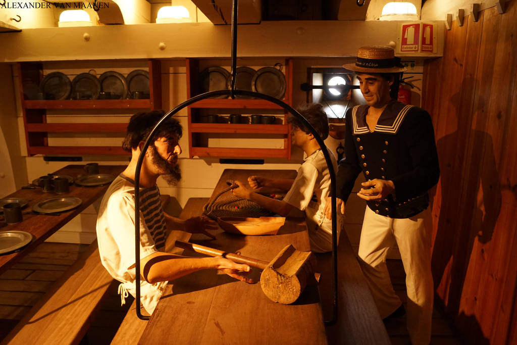 Ordered to be built in 1824 although not earlier launched as on 22 October 1843 at the Royal Naval Arsenal, Damão, Portuguese India and departed on 2 February 1845 Goa arriving on 4th July at Lisbon, Portugal. Burned on 3 April 1963 and what was left was towed to a place along the Tagus to prevent that the shipping was disturbed. The wreck was on 22 January 1992 brought to the Arsenal of Alfeite and in 1992 to the Ria-Marine shipyards at Aveiro and there restored. On 27 April reinstalled in the navy as an auxiliary ship and the same year handed over to the Naval Museum.