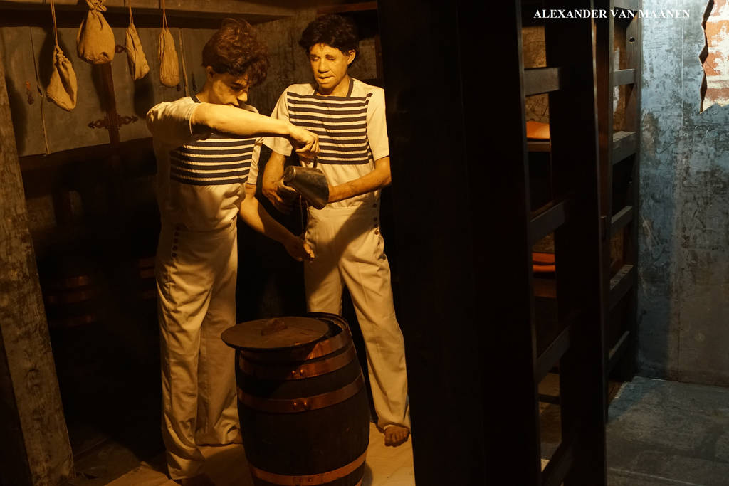 Dimensions 87 x 13 x 6,4 metres or 284 x 32 x 21 feet and a displacement of 1.849,16 tons. 4-Decker. Armament consisted of 50 guns gundeck 28-19pd gun, deck 20-32pd carronades and forecastle 2-12pd bow chasers). Sail area 2.052,2 square metres/22.190 square feet. Crew numbered 146-379 men and 270 passengers.
