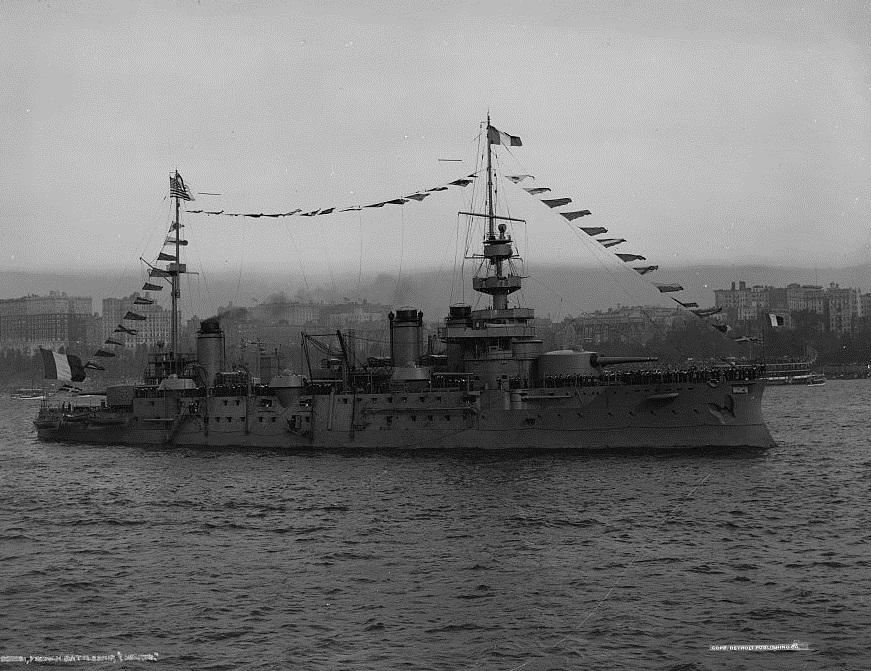1. Of the Liberté-class pre-dreadnought battleships designed by Emile Bertin, preceded by the République-classs and succeeded by the Danton-class, laid down at the Ateliers et Chantiers de la Loire, Saint Nazaire, France in November 1902, launched on 19 April 1905, completed in March 1908 and destroyed by an accidental explosion in her magazines in the harbour of Toulon, France on 25 September 1911.