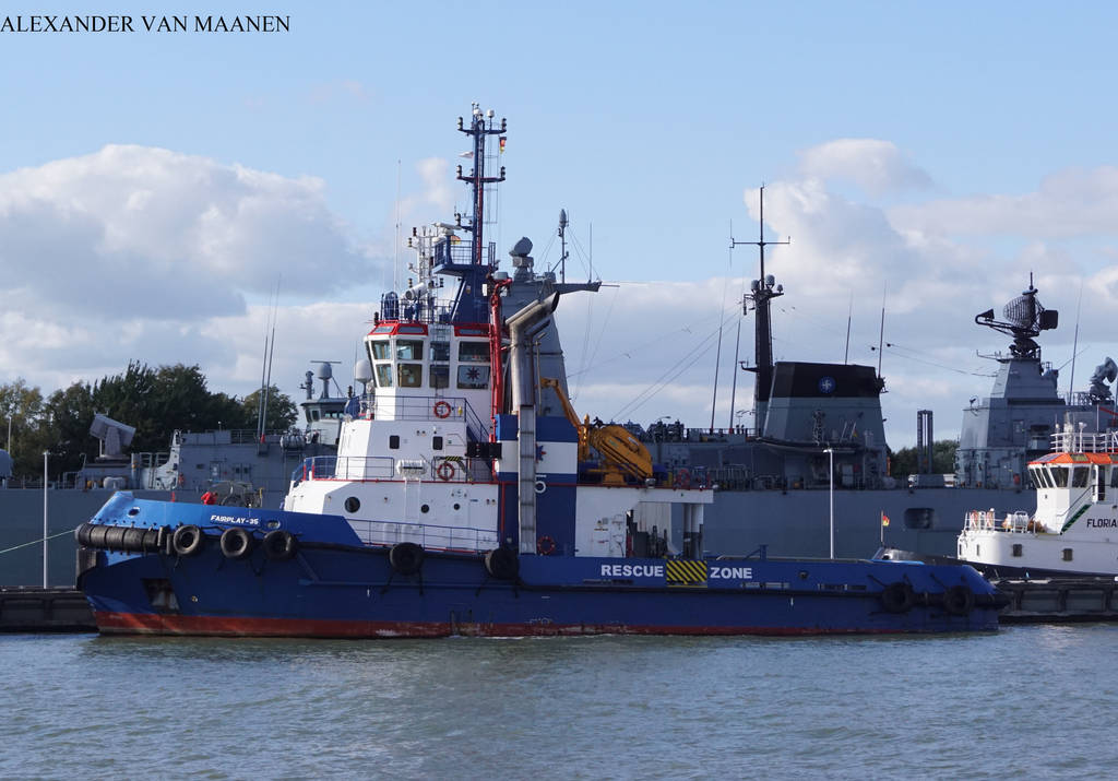 Germany-flagged, IMO 9565194, MMSI 211795250 and call sign DIHX2. Gross tonnage 785 tons, deadweight 627 tons and as dimensions 37,00 (over all) x 14,00 (over all) x 5,20 (minimum)-6,70 (maximum) metres. Bollard pull 103 tons. Speed 12 knots. Cruising range around 24 days. Part of the fleet of Fairplay Schleppdampschffs- Reederei Richard Borahcrd GmbH, Hamburg, Germany. Built by Astilleros Armon, Navia, Spain in 2011. Owned by Remolques Gijoneses, Gijon, Spain and Antigua&Barbuda-flagged, MMSI 304028000 and call sign V2GO5. Ex-Verina renamed July 2014. Earlier also Poland-flagged, MMSI 261036320 and call sign SPG4510?