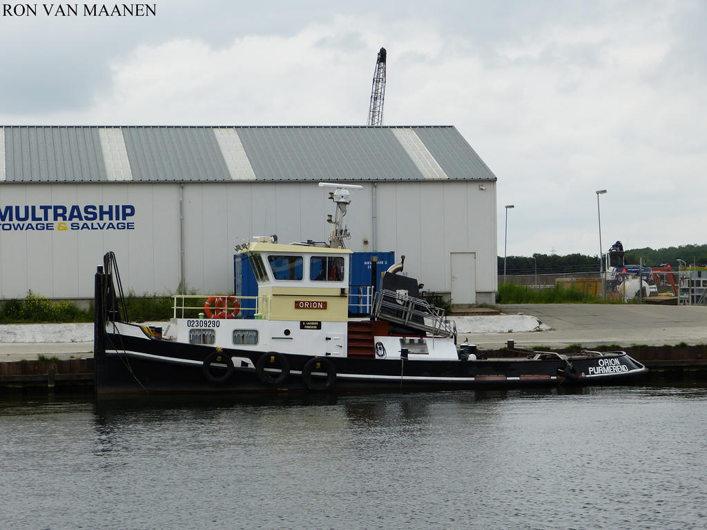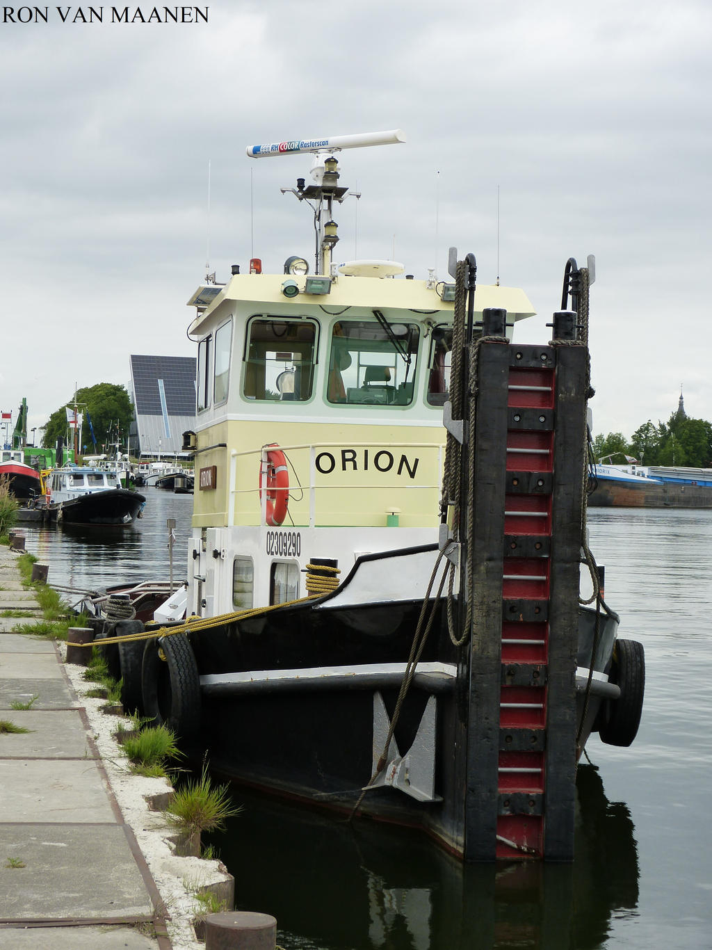 Netherlands-flagged, ENI 02309290, MMSI 244740335 and call sign PH6385. Original 1-158hp Deutz engine replaced by 1-710hp GM 16V92TA engine/ Dimensions 17,36 x 4,46 x 1,56 metres. Built by R. Huisman, Rohel, Netherlands with yard number 1 in 1955. As Gerda owned by L.G. van Winssen, Maabracht, Netherlands, as Martha-B since 1962 owned by C. Broeken, Rotterdam, Netherlands, since 1963 by P.A. Versluis, Werkendam, Netherlands, same year by C.H. Broekmeulen, Dordrecht. Netherlands, as Westerschelde since 1964 of. Vander Klooster, Terneuzen, Netherlands, since 1972 of R.L. van den Berg, Krimpen a/d Lek, Netherlands, since 1980 Zobra of R.L. van den Berg BV, Krimpen a/d Lek, renamed Orion in 1982 of H. Noorda, Hellevoetsluis, Netherlands. 1988 of L.W. Sluimer, Hardinxveld, Netherlands, 1993 of Schutz, Willemstad, Netherlands and 1999 of Vof. L.A. Lagerbrug, Purmerend, Netherlands.