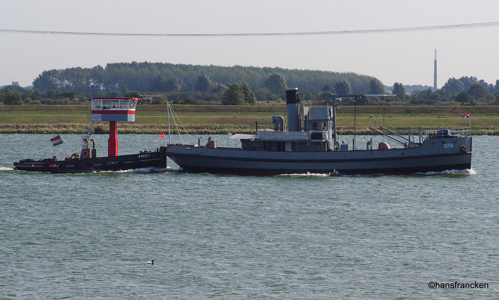 Laid down by J. Samuel White, East Cowes, Wight with yard number 1754 for account of the British Royal Navy in June 1933, launched on 20 November 1933, commissioned on 16 January 1934, added to the submarine depot at Portland, submarine depot ship HMS Titania, 6thbSubmarine Flotilla, renamed HMS Nettle (T94) on 20 August 1941 when she was transferred to Blyth, mentioned for dosposal in October 1945 which was not executed while she stayed in service sold to Pounds scrap yard, Portland on 14 August 1957, since 9158 property of the Amsterdam Drydock Company (ADM), Amsterdam, Netherlands, converted into the tanker cleaning vessel Droogdok 19, later renamed H.O.M. 7 and in the 1980s TCA1. And renamed Elfin in 1985 of the Stichting tot Behoud van het Stoomschip in Koog a/d Zaan, Netherlands.