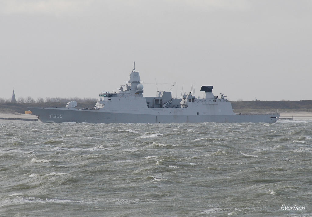 Of the De Zeven Provinciën-class. Laid down on 6 September 2001, launched on 19 April 2003 and commissioned on 10 July 2005. General technical specifications: displacement of 6.050 tons and as dimensions 144,2 x 17,5 x 5,2 metres. The crew numbers 169-207 men. MMSI 244942000 and call sign PAEU.