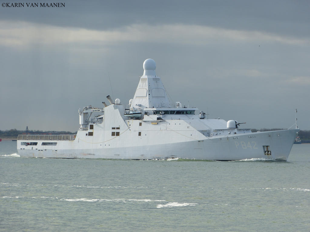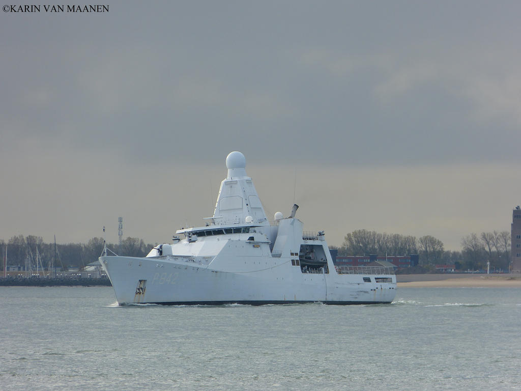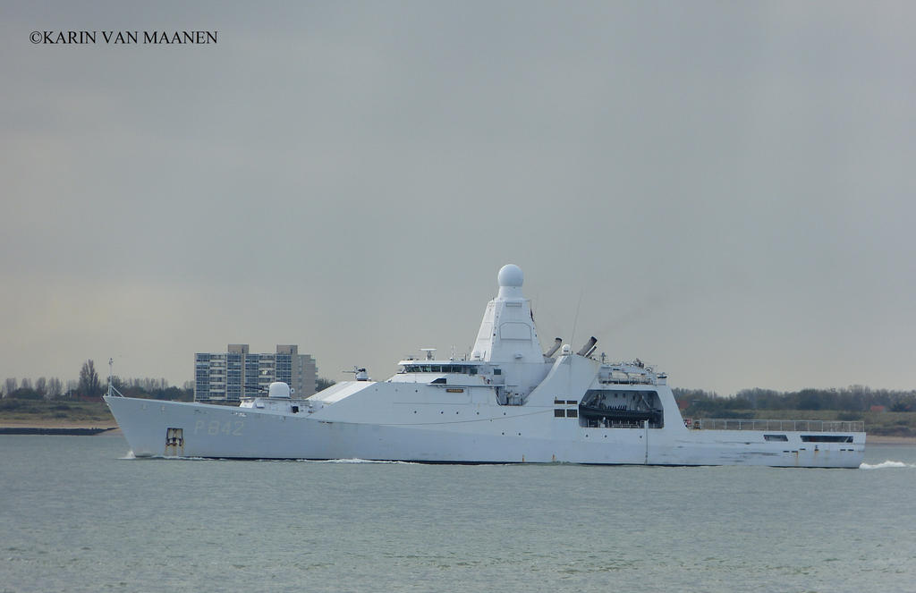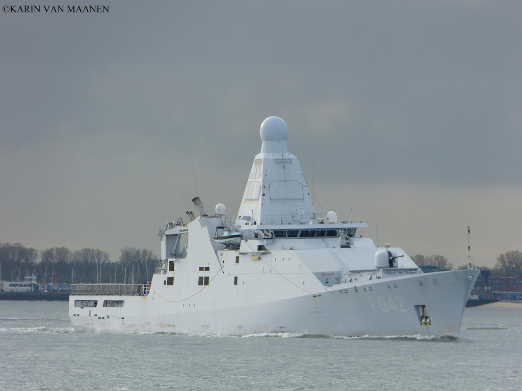 Of the Holland-class, consisting of the Holland, Zeeland, Friesland and Groningen. Laid down by the Damen Group on 26 November 2009, launched on 4 November 2010 and commissioned on 22 January 2013. Netherlands-flagged, MMSI 245838000 and call sign PAVC. Displacement 3.750 (full load) tons and as dimensions 108,4 x 16 x 4,55 metres or 355.8 x 52.6 x 14.11 feet. Speed 21,5 knots. Armament consists of 1-7,6cmm Oto Melara Super Rapid, 1-3cm Oto Melara Martin WE, 2-12,7mm/0.50 Oto Melara Hitrole NT and 6-7,62mm FN MAG machine guns and 1 NH90 helicopter.