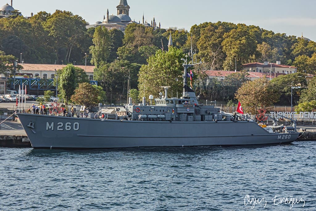 Part of the Engin-class wood built coastal minesweepers converted into a mine hunter. The former French Circe-class FS Cybèle (M-712), laid down by CMN, Cherbourg, France on 15 September 1970, launched on 2 March 1972, commissioned on 28 September 1972, transferred to Turkey on 24 September 1997 following an extensive modernization. Displacement 460 (standard)-495 (normal)-510 (full load) tons and as dimensions 50.9 x 8.9 x 3.4 metres or 167 x 29 x 11.2 feet.