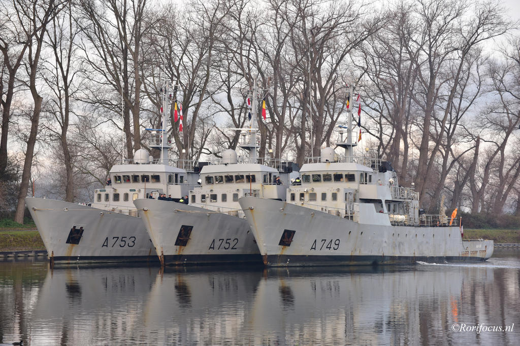 Of the Léopard-class, preceded by Adjutant-class, succeeded by Almak. Tonnage 335 (standard)-470 (full load) tons and as dimensions 43 x 8.3 x 2.21 metres or 141.1 x 27.3 x 10.6 feet. Propulsion consists of 2 SACM-Wårtsilå UD30 V16-M3 diesels with 1,600 kW and 2 shafts/screws allowing a speed of 15 knots and a range of 4,100 nautical miles/12 knots. Crew numbers 15 men to which 22 men training personnel are added. The armament consisted original of 2x1-2cm Oerlikon canon, replaced in 2002 by 2x1-12.7mm/0.50 machine guns.