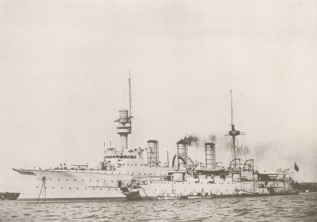 Part of Victoria Louise-class protected cruisers preceded by Kaiserin Augusta succeeded by Fürst Bismarck. Building ordered under contract name ‘L’.Laid down by AG Weser, Bremen, Germany on 9 April 1896, launched on 29 March 1897, commissioned on 20 February 1899, stricken on 1 October 1919, converted into a cargo ship in 1920, renamed Flora Sommerfeld and broken up in 1923.