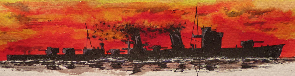 Part of Shiratsuyu-class destroyers preceded by Hatsuharu-class, succeeded by Asashio-class. Consisted of Shiratsuyu, Shigure, Murasame, Yudachi, Harusame, Samidare, Umikaze, Yamakaze, Kawakaze and Suzukaze. Built under the Circle One Pogram 1931 Fiscal Year. Laid down by Uraga Dock Company on 9 December 1933, launched on 18 May 1935, commissioned on 7 September 1936, sunk by the American submarine USS Blackfin in the Gulf of Siam on 24 January 1945 and stricken on 10 March 1945. Standard displacement 1,712 tons. Speed 34 knots. Armament 2x2&1x1-12.7cm/5” cal 50 Type 3 naval guns, 2x1-13mm/0.52” Type 93 anti aircraft machineguns. 2x4-61cm/24” torpedo tubes for which 16 Type 9 3 torpedoes were carried and 16 depth charges.