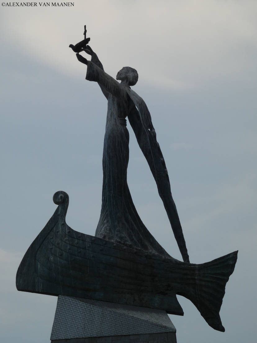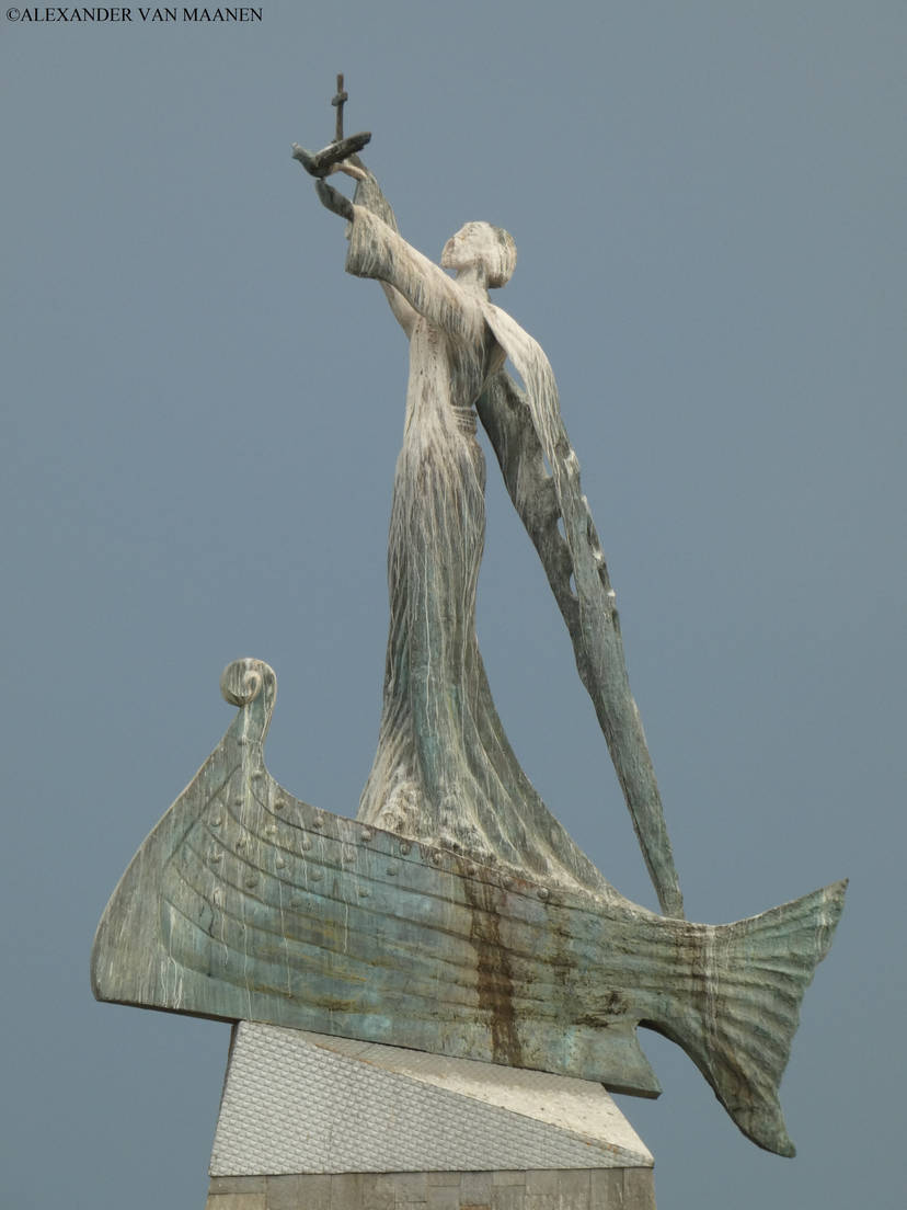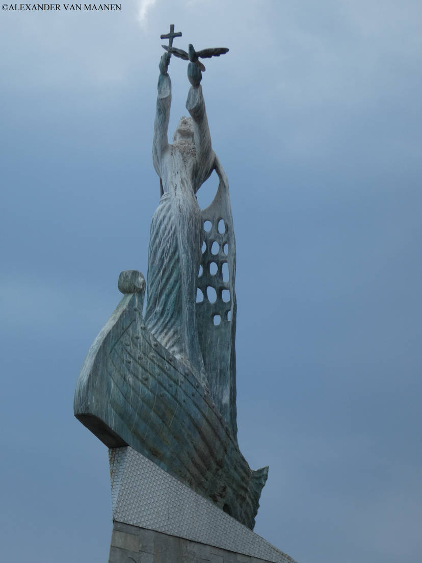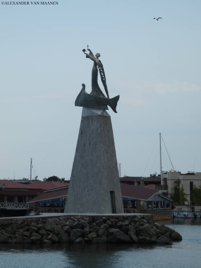 Statue of St. Nicholas or Noah. Located on the south side of the isthmus and made by sculptor annex painter Stavri Kalinov (15 November 1944 Vidin, Bulgaria) in 2006. He calls it “the new Noah in search of the Promised Land, and perhaps the dove has found salvation in this blessed Nessebar coast.” It holds a cross and a dove and with a height of 10 metres. Frequently people identify the statue however as St. Nicolas the patron saint of sailors.