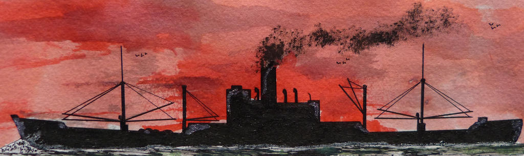 Call sign JPAM. Laid down by by Osaka Iron Works Ld., Innoshima on 24 December 1937, launched on 10 September 1938, completed on 28 November 1938, requisitioned by the navy on 16 December 1940, converted between 22 December 1940-16 January 1941 into an auxiliary collier-oiler, sunk in an Allied air attack on the Marshall Islands on 4 December 1943 and stricken on 15 February 1944. Gross tonnage 6,517 tons, net tonnage 3,880 tons and as dimensions 424.1 x 57.4 x 34.4 x 9.6 (light)-27.6 loaded) feet. Steam turbine propulsion, 517 nhp and range 10,000 nautical miles/cruising speed (>12 knots).