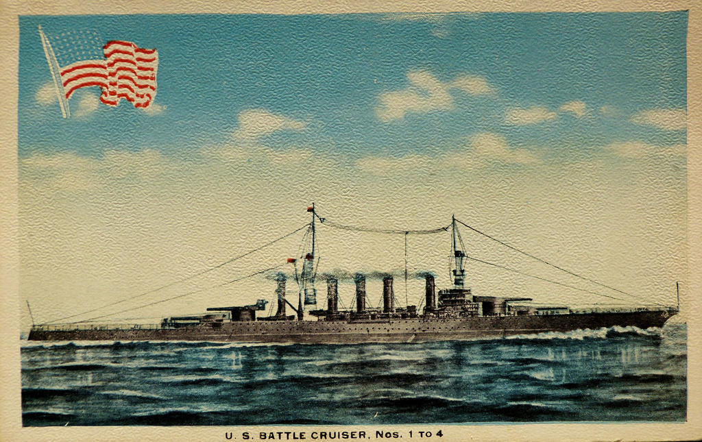 Armament was to be 2x2 and 2x3-35.56cm/14”cal 50 guns with the triple gun turrets supper firing and as secondary armament 18-12.7cm/5” cal 51 guns. With a displacement of 34,900 tons, 180,000 shp (for which 24 boilers were needed) was the estimated speed 35 knots.There were six planned to be named Lexington, Saratoga, Constellation, Ranger, Consititution, Ranger and United States the CC 1-6. The building of the last four already on stocks was cancelled due to the Washington Naval Treaty in 1922, the first two were completed after their conversion into aircraft carriers. Final design mentioned a displacement of 44,200-45,354 (deep load) tons and as dimensions 266.4 (over all) x 32.1 x 9.4 metres or 874 x 105.4 x 31 feet and an armament of 4x2-40.6cm/16” guns, 14x1-152cm/6” guns, 4 (lter 8)x1-7.6cm/3” anti aircraft guns anf 8-53.3cm/21” torpedo tubes.