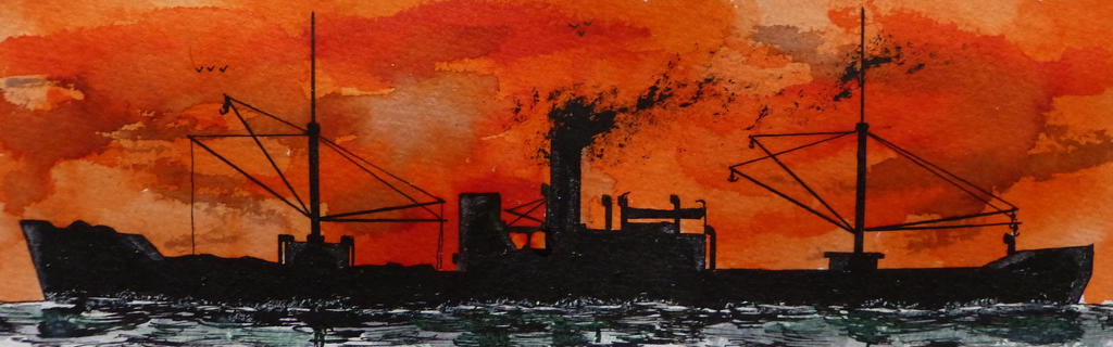 Call sign JTUL. Built by Osaka Iron Works Ld., Osaka, Japan in 1937, requisitioned by the navy as auxiliary transport in December 1940 and torpedoed and sunk by the American submarine USS Thresher (SS-200) of the Truk Atoll on 12 November 1943. Gross register tonnage 4,862 tons, net tonnage, deadweight 6,983 tons and as dimensions 369.8 x 54.1 x 29.2 x 8 (light) 24 (loaded) feet. Horsepower 379 nhp, coal bunker capacity 782 ton, range 6,600 nautical miles/13 knots and speed 12 (normal cruising)-15 (maximum) knots.