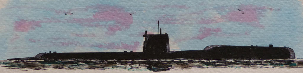 Laid down by Mare Island Naval Shipyard on 1 July 1954, launched on 2 July 1957, commissioned on 7 March 1958, decommissioned on 25 May 1964, converted into an amphibious transport submarine (LPSS), recommissioned in 1958, decommissioned on 16 June 1984 and sunk as a target near Subic Bay, Philippines on 13 April 1986. Part of Grayback-class preceded by Tang-class. Consisted of the Grayback SSG-574 and Growler (SSG-577). Tonnage 2,670 (surfaced)-3,650 (submerged) tons, full displacement 2,812 tons and as dimensions 96.80 x 8.28 x 5.8 metres or 317.7 x 27.2 x 19 feet. Propulsion consisted of 3 × Fairbanks-Morse Diesel engines with a total horsepowe of 4,500 shp, 2 Elliott electric motors with a total horsepower of 5,500 shp and 4 × 126-cell GUPPY I batteries with 2 shafts a speed of 15 knots (surfaced)-12 (submerged) knots. Test diving depth 210 meter/700 feet. Crew numbered 25 men. Armament consisted of 2 × Regulus missile hangars (4 × Regulus I missiles or 2 × Regulus II missiles) and 8-53.3cm/21"(6 bow, 2 stern).