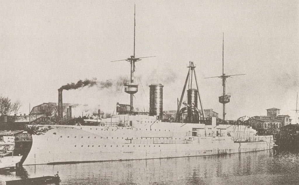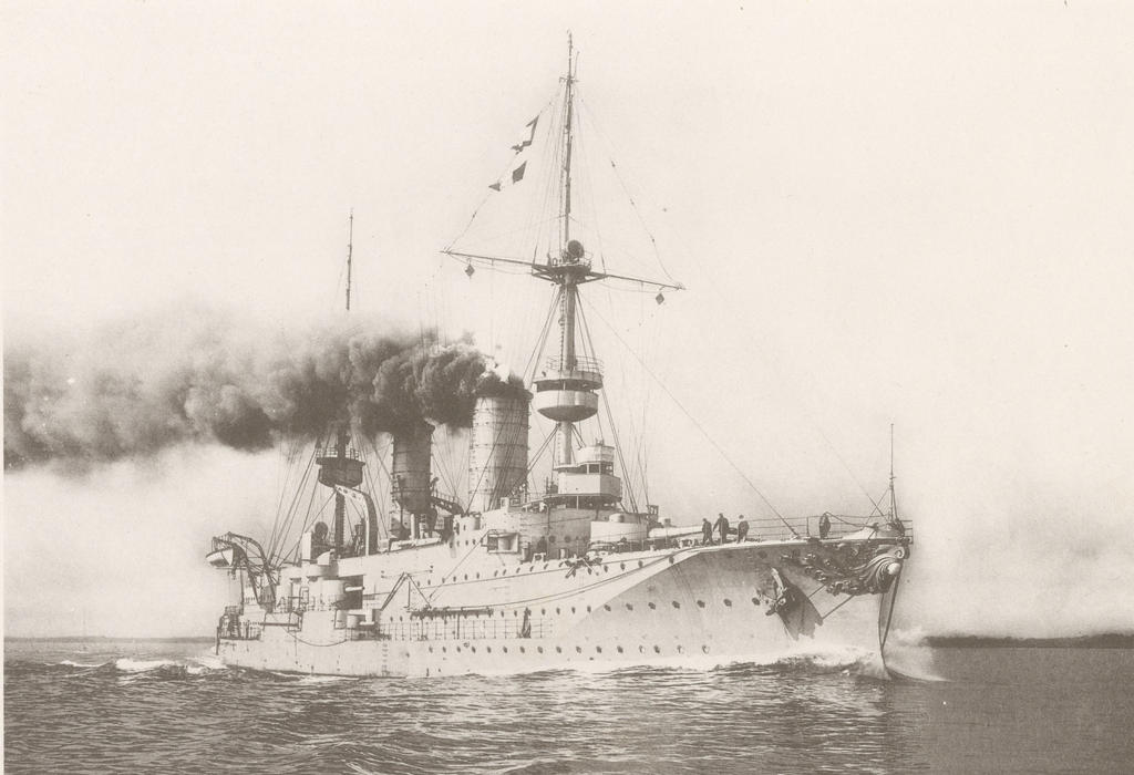 Preceded by Fürst Bismarck succeeded by Prinz Adalbert-class, laid down by Kaiserliche Werft, Kiel, Germany in December 1898, launched on 22 March 1900, commissioned on 11 March 1902, decommissioned on 27 March 1916, stricken on 25 January 1920 and broken up.