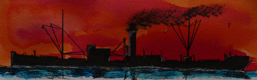 Call sign JWJD. Built by Union Iron Works Co., Alameda, USA in April 1917 and torpedoed and sunk by the American submarine USS Cobia west of Chichi Jima on 18 July 1944 whilse serving as troop transport. As Bessa and Binna Norway-flagged, as Binna call sign LETA. Gross tonnage 7,786-7,815 (as Binna) tons, under deck 7,422 tons, net tonnage 5,847 tons, deadweight tons 11,650 tons and as dimensions 410.9 x 56.2 x 38.4 x 9.7 (light)-30.5 (loaded) feet. Reciprocating propulsion, bunker coal capacity 1,200 tons, range 6,480 nautical miles/9 knots and speed 9 (normal cruising)-10 (maximum) knots.