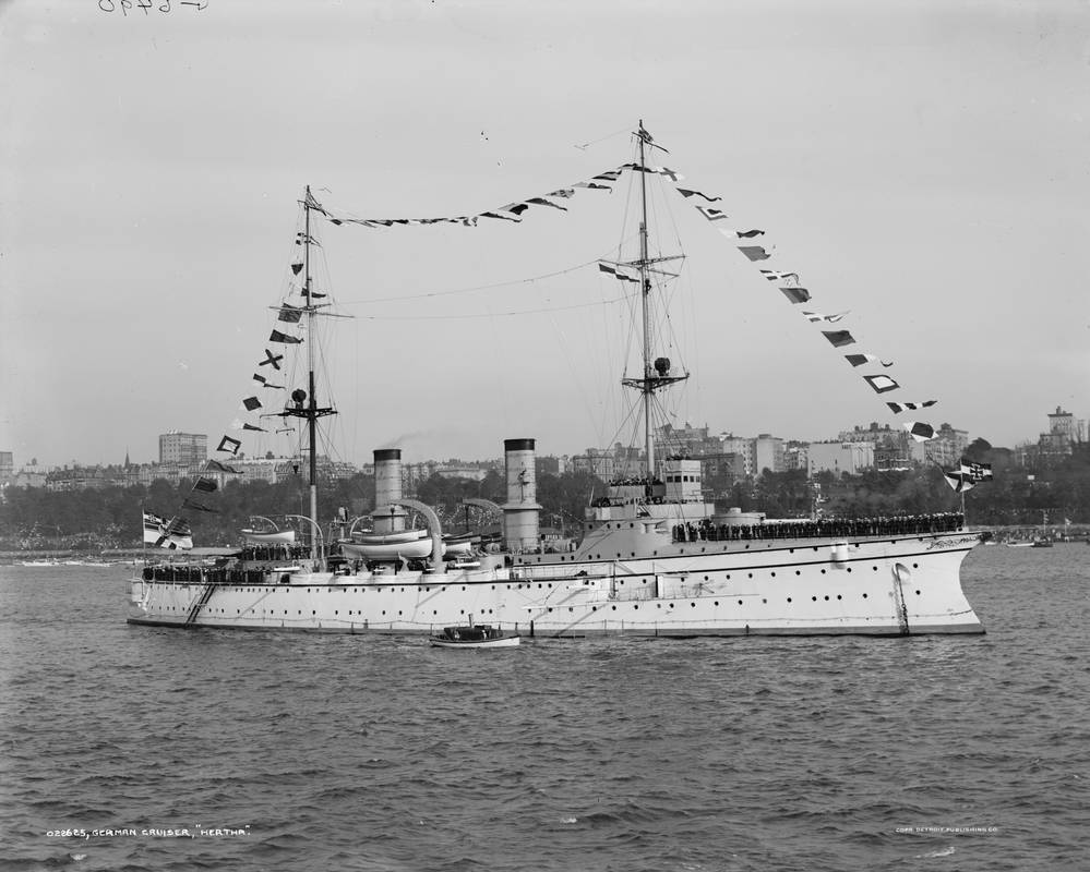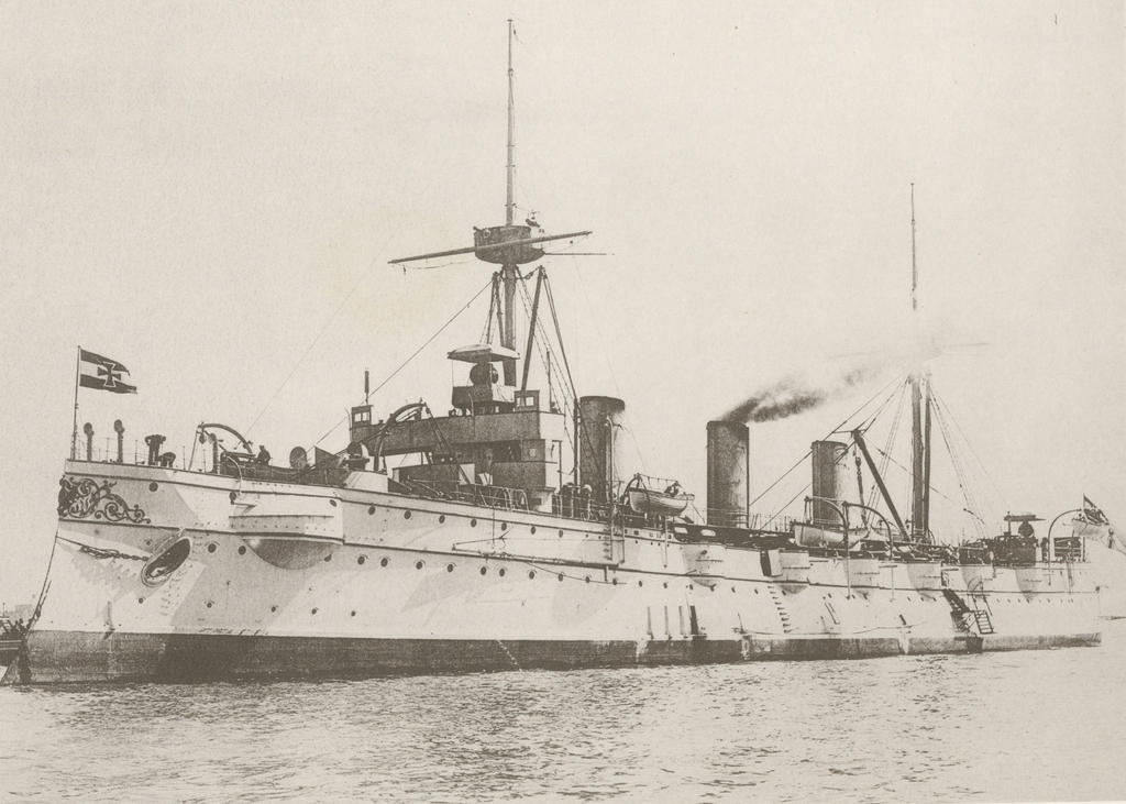 4. Protected cruiser preceded by Victoria Louise-class, laid down by Germaniawerft, Kiel, German in 1890, launched on 15 January 1892,commissioned on 17 November 1892, stricken on 1 October 1919 and broken up in 1920.