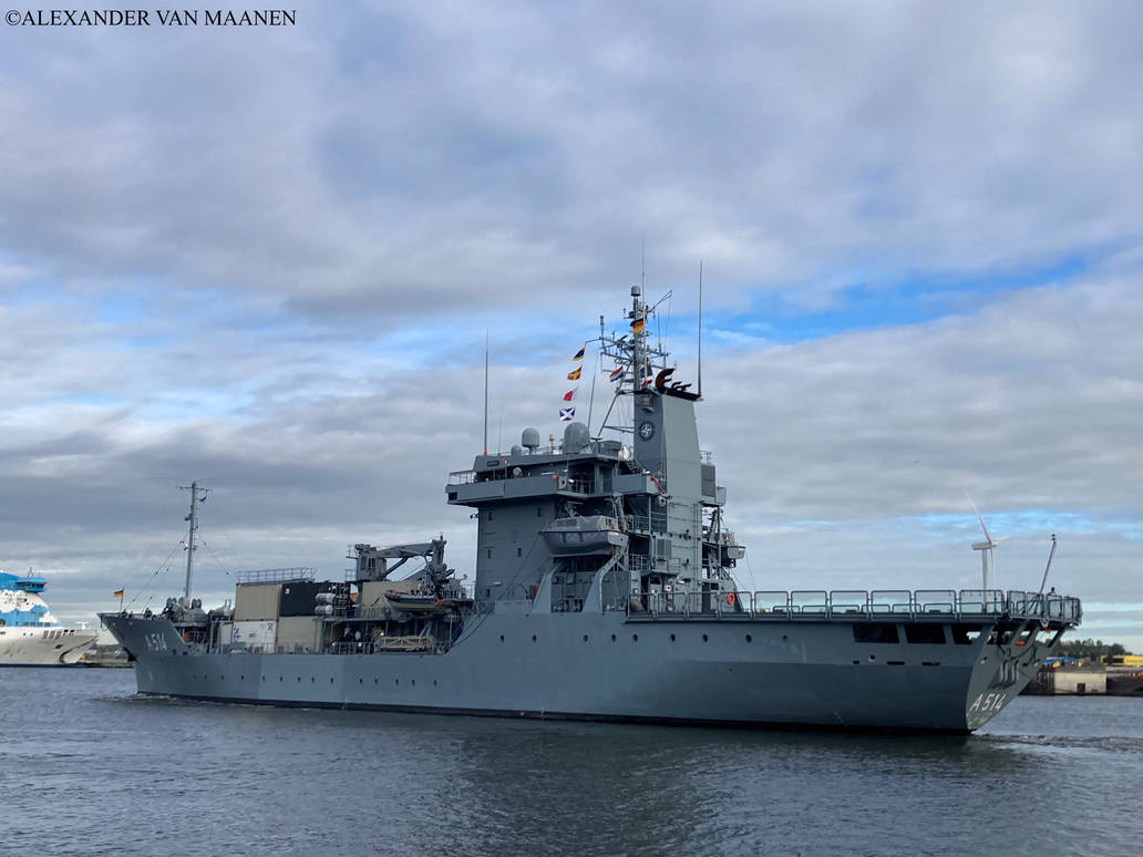 German-flagged, homeport Kiel, Germany, MMSI 21120100 and call sign DHRM. Part of Type 404 Elbe-class replenishment ships succeeded by Berlin-class. Launched by Flensburger Schiffbau on 17 June 1993, commissioned on 9 December 1993.