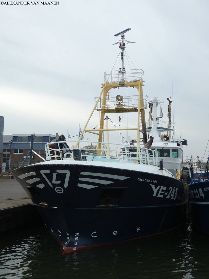 Was Ireland-flagged, homeport Waterford, IMO 9306055, MMSI 244870246 and call sign EIQL. Owner/manager Woodstown Bay Shellfish, Waterford, Ireland. Built by Padmos Scheepswerf, Stellendam, Netherlands in 2004. Now Netherlands-flagged, homeport Yerseke, call sign PBHV.