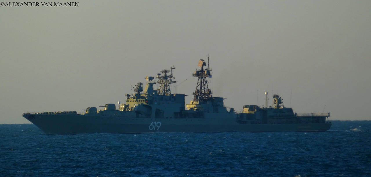 Russia-flagged, Homeport Deveromorsk. Project 1155 Frigate/Udaloy-class preceded by Sovremenny-class succeeded by Lider-class. Laid down by Severnaya Verf, Saint Petersburg, Russia on 12 June 1984, launched on 24 December 1985, commissioned on 30 December 1987