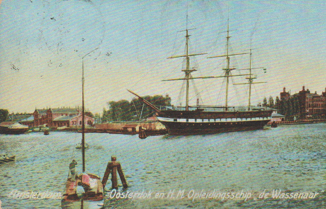 Call sign GQBE, wood-built, laid down at the navy yard at Amsterdam, Netherlands as the 74 gun ship of the line Piet Hein on 15 February 1833, disassembled 1850, laid down as a screw steam frigate designed by A.E. Tromp in 1853, launched as the Admiraal van Wassenaar on 6 September1856, commissioned on 16 July 1857, converted into a training ship at the navy yard of Amsterdam 1875, commissioned for training boys and ordinary seamwn 11 April 1876, until 1 January 1913 used as training and guard ship at Amsterdam and sold on 28 May at Amsterdam for ƒ 37.781,00 to be broken up, displacement 3.650 tons, dimensions 62,36 (between perpendiculars)-72,86 (over all) x 15,72 x 6,80 metres, horsepower 300 hp, speed maximum 10,67 miles, armament 8 (4 medium 30pd guns, 4-12cm guns, 1877: long 12pd guns)-45 guns and a crew numbering 450 men. On 1 October 1876 were 335 boys trained divided over 4 groups, the youngest (group 1) numbered 108 boys, groups no.2-4 respectively 103, 60 and 64.