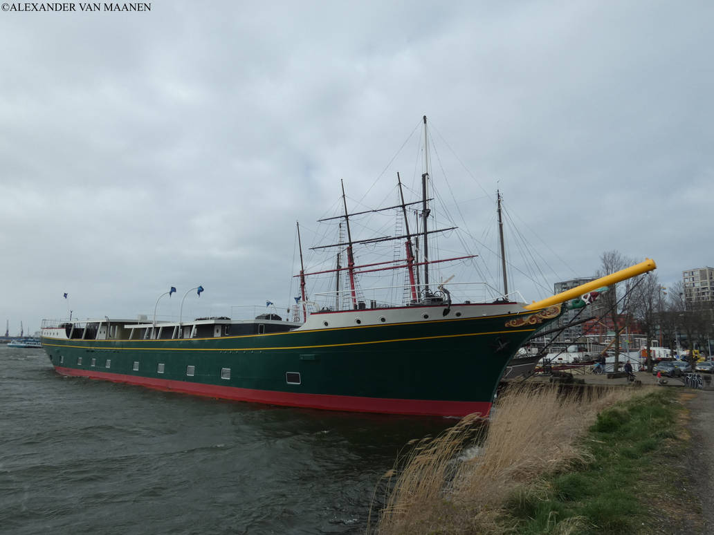 Launched as a replica of a Dutch 3-mast bark around 1850 at the shipyard of rederij Verschure, Amsterdam on 9 September 1940. Commissioned in January 1941 as training ship for the Matrozen Instituut what became the Lagere Zeevaartschool until December 1990. Between 1940-1984 berthed in the Oosterdok. Sold to Amstel Botel owners in 2014, overhauled at Scheepswerf Brouwer, Zaandam, Netherlands 8 January-25 March 2015 and since then used as floating restaurant. Now under conversion into a floating hotel. Designed by E. van Dieren at Rotterdam, Netherlands. Building started in April 1940. Commissioned on Saturday 4 January 1941