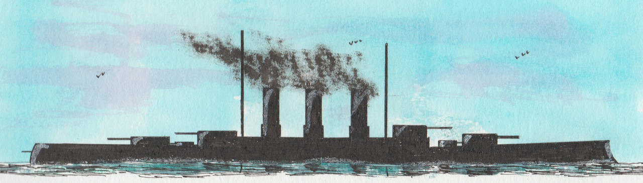 Displacement 20,000 tons. Armament 4x2-30.5cm guns and 36 10cm guns. Three funnels.