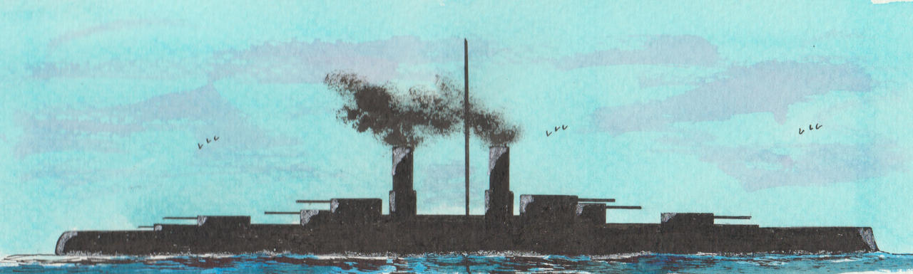 Displacement 20,000 tons. Armament 8x2-30.5cm guns and 32-10cm guns. Two funnels.