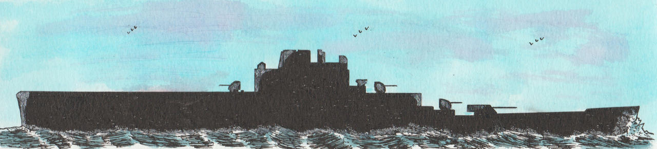 The design was made for the General Board for the last effort to developed such type of ship but never built. Displacement 12,000 (standard)-14,220 (trial) tons and as dimensions 640 (waterline) x 67 (waterline) x 21.8 feet. Geared turbine propulsion with 2 boiler rooms, maximum speed 33 knots with 100,000 ship and range 10,000 nautical miles/15 knots. Armament consisted of 1x3-8” cal 55 guns, 8-5” cal 38 dual purpose guns, 8-0.50” anti aircraft machine guns and 24-36 aircraft. The armour consisted of a main side belt of 5” on 25” depth below the waterline 5’. Protective deck 2.25”. Main deck (bomb) 40’”. Turret (8.0 (face)-3.75/15 (sides)-3.0 (top)-1.5 (rear). Armored pilot house 2.5 (sides)-5.0 (top)-40 (tube). Control spaces 40, 5” twin mounts 30 and 5” handling rooms 30.