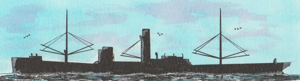 Denmark-flagged, call sign Ozza. Launched by Burmeister&Wain, Copenhagen, Denmark with yard number 305 on 19 April 1916, delivered on 22 June 1916, transferred to the British Ministry of War Transport in 1940 and sold in 1946. Gross tonnage 3,726 tons, under deck 3,439 tons, net tonnage 2,304 tons and as dimensions 362.0 x 51.5 x 23.4 feet.