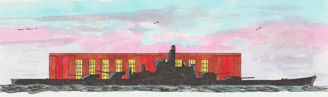 Drawn for the General Board in a design process what ended with the Montana-class (BB67-71). With a displacement of 52,500 (standard)-64,500 (trial) tons and as dimensions 860 (waterline) x 114 (waterline) x 36 feet. Armament 4x3-40.64cm/16” cal 50 guns and 10x2-12.7cm/5” cal 38 guns. With 130,00 hp horsepower a speed of 29 knots. BB-65 was the USS Ilinois part of the Iowa-class preceded by the South Dakota-class succeeded by the Montana-class, ordered on 9 September 1940, laid down by the Philadelphia Naval Shipyard on 6 December 1942, stricken on 11 or 12 August 1945 (22% complete) and broken up still on the slipway in September 1958.
