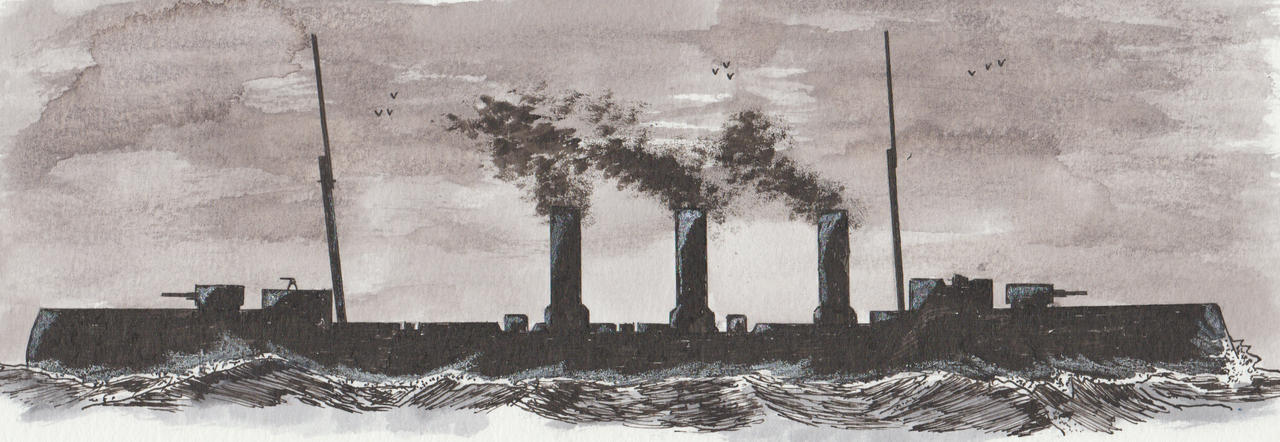 1. Laid down by the Admiralty Shipyard, St. Petersburg on 6 July 1902, launched on 14 August 1903, commissioned on 24 June 1904, torpedoed and sunk by the British speedboat CMB-4 attacking Kronstadton 17 June 1919, partly salvaged in 1919 and 1933, what was left in 1983. Part of Bogatyr-class protected cruisers preceded by Askold and succeeded by Novik.