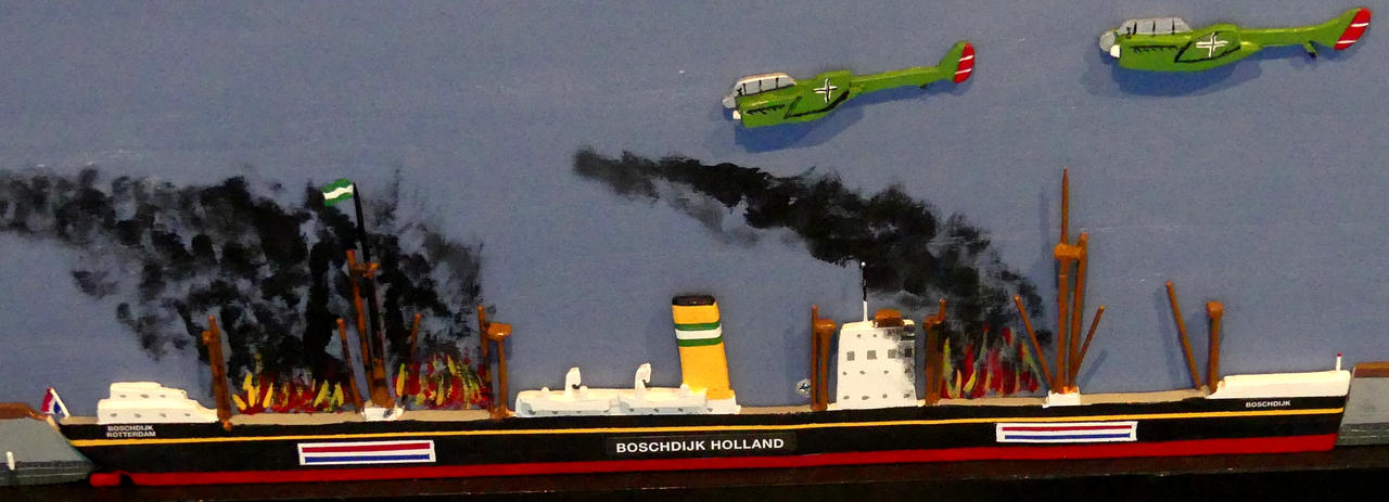 Launched by N.V. Industrieële Maatschappij 'De Noord', Alblasserdam, Netherlands with yard number 132 on 21 June 1922, delivered to owner/manager N.V. Nederlandsch-Amerikaansche Stoomvaart Maatschappij 'Holland-Amerika Lijn', Rotterdam, Netherlands on 19 October 1922. set afire durings the battle for the Maasbridges, Rotterdam and burned out on 11 May 1940, towed to Hendrik-Ido-Ambacht, Netherlands to be broken up by N.V. Holland Scheepswerf en Machinehandel on 16 July 1940, seized by the Germans in April 1942 and sunk in the Baltic when used by the Luftwaffe as target.