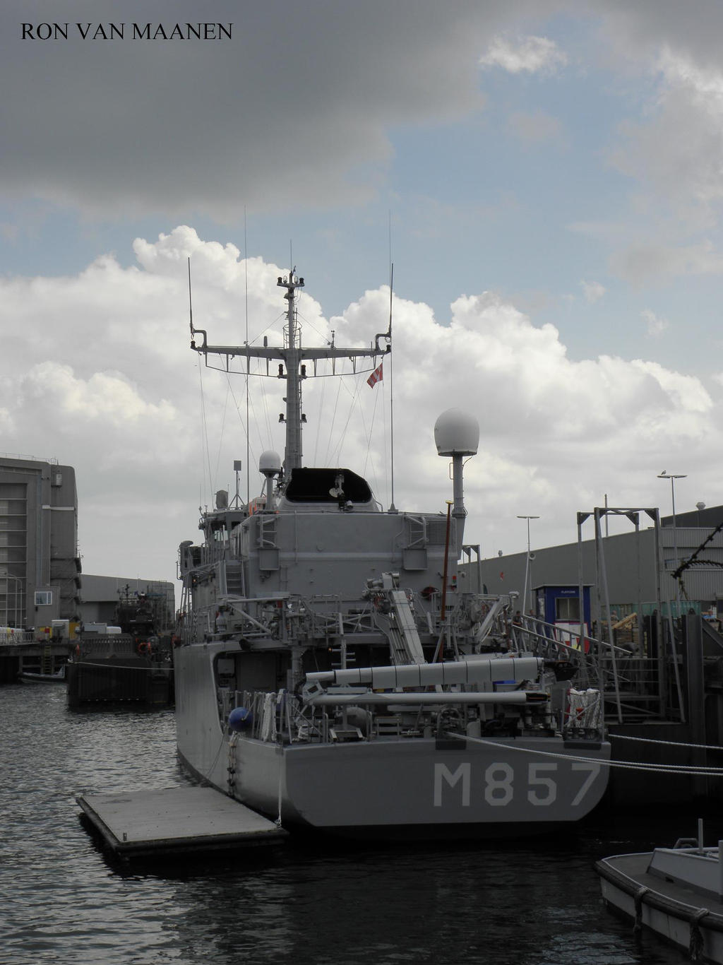 Laid down at the shipyard Van der Giessen Noord, Alblasserdam, Netherlands on 28 February1983, launched on 23 February 1985 and commissioned on 13 May 1985. Loaded displacement 544 tons and as dimensions 51,6 x 8,96 x 2,45 metres. A crew numbering 49 men. An armament consisting of 1-2cm guns. Of the Tripartite-design Dutch Alkmaar-class. MMSI 244025000 and call sign PAEH..