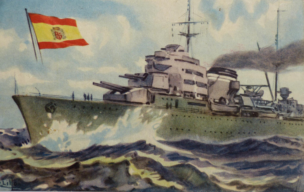 Heavy cruiser Canarias 1928-1978. Original postcard Chocolate La Estrella