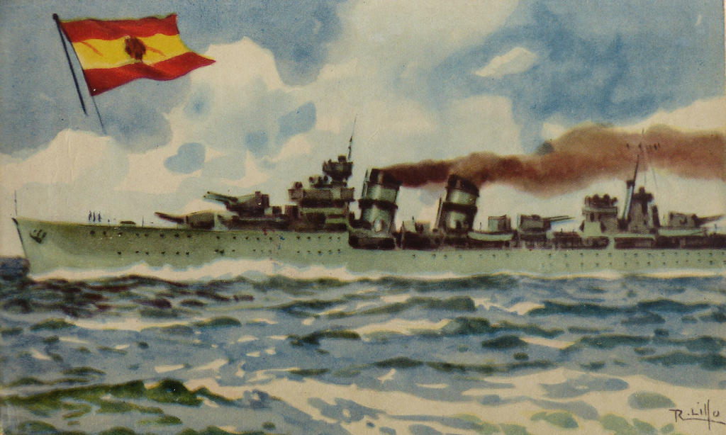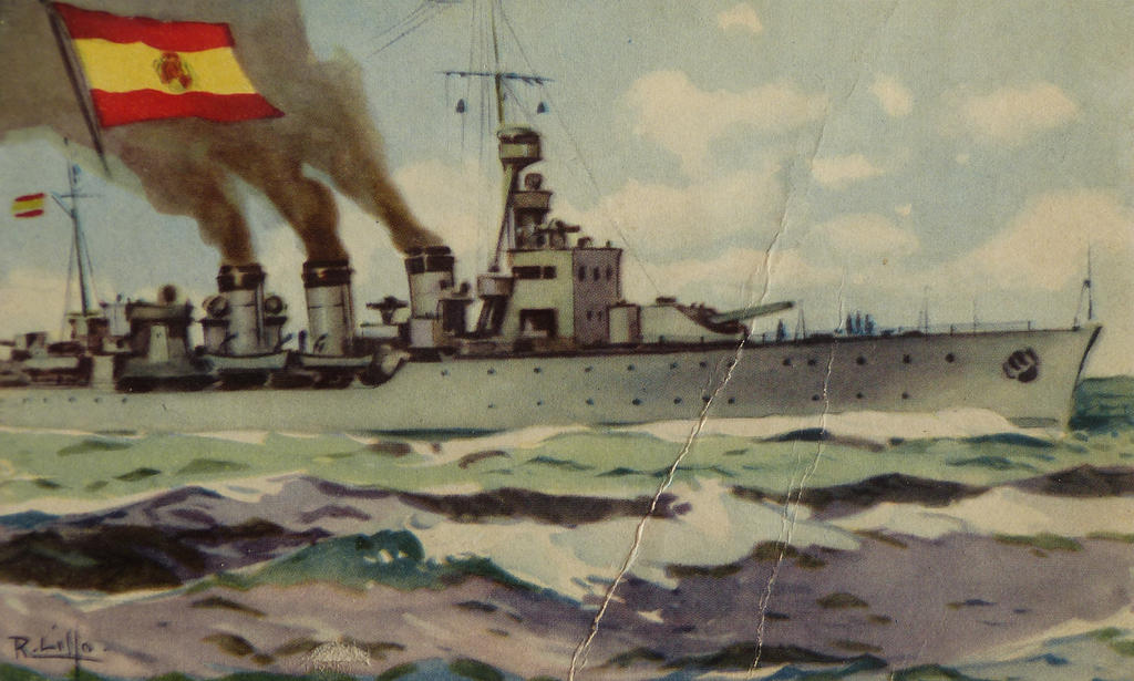 Heavy cruiser Baleares 1928-1938. Original postcard Chocolate La Estrella
