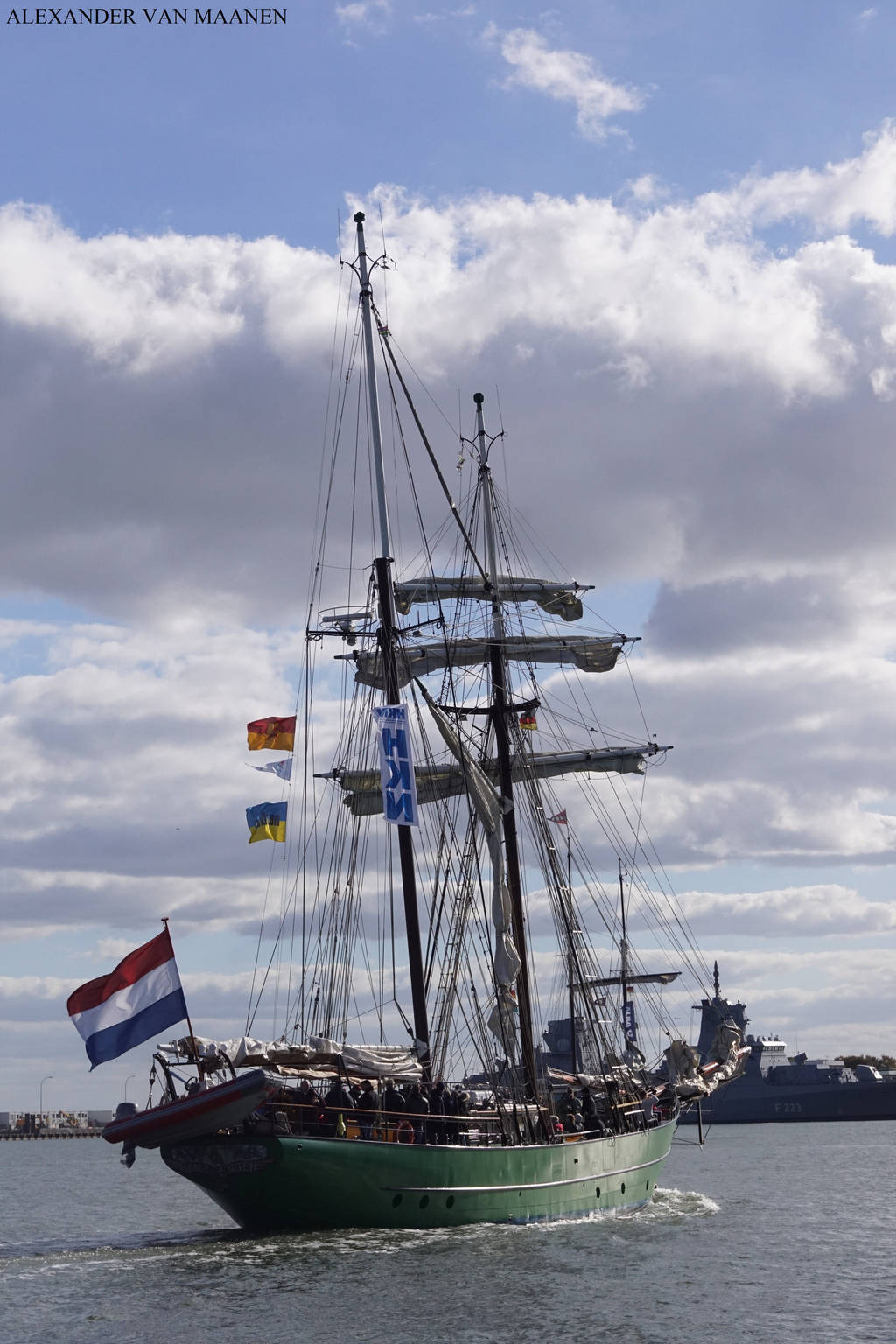 Originally built for the German Kriegsmarine in 1941 at Wolgast, Germany as a cutter with yard number 401. Composite-hull consisting of iron thrushes with a wooden hull. Appearance of a fishing cutter to mislead the enemy. In 1957 at Spaarndam, Netherlands was the wood replaced by steel and commissioned as a fishing vessel, at the end as the IJmuiden 64 or Grietje Maria on the North Sea until she was stricken during the of the fisheries rehabilitation. Then used for sport fishery until she was sold in 1998 to be converted into a charter ship. This project was however not completed and in 2010 again sold to André Hanzens. She was now converted into a top sail schooner which was in March 2014 commissioned. Dimensions nowadays 34,5 x 6,4 x 2,8 metres and a sail area of 310-450 square metres.