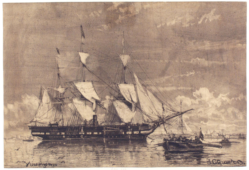 Call sign GQJK. Laid down at the navy yard at Vlissingen, Netherlands on 16 October 1854, launched, on Monday 21 September 1857, destined for training sea militia 1 May 1877, decommissioned on 15 November 1881, at the navy yard at Willemsoord, Netherlands engines and boilers removed, renamed Neptunus on 11 March 1893, used as accommodation for army personnel September 1914, stricken in 1921.