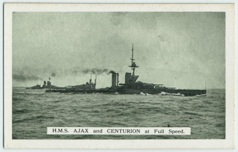 1. Part of the King George V-class consisting of the King George V (ex-Royal George), Audacious, Centurion and Ajax, preceded by the Orion-class and succeeded by the Iron Duke-class. Ordered under the 1910 construction program. Laid down by Scotts Shipbuilding and Engineering Company, Greenock, Scotland on 27 February 1911, launched on 21 March 1912, completed on 31 October 1913, decommissioned in 1924, part of the reserve at Devonport and sold to the Alloa Shipbreaking Company be broken up om 10 December 1926 which started at Rosyth, Scotland from 14 December 1926 on.
