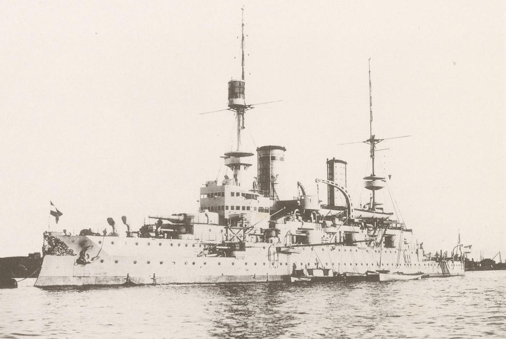 General technical class specifications: Displacement 11.097/10.922 long tons (standard)-11.785 tons/11.599 long tons (full load) and as dimension 125,x 2 20,4 x 7,89 metres or 411.1 x 66.11 x 25.11 feet. The 3-3 cylinder vertical triple expansion engines, 4 Thornycroft and 8 cylindrical boilers supplied 13.000 hp allowing a speed of 17,5 knots and with a speed of 10 knots a range of 3.420 nautical miles. The crew numbered between 658-687 men. The armour consisted of a 14-30cm/5.9-11.8” thick belt, a 56,5cm/2.6” thick deck with the conning tower, gun turrets and casemates protected by respectively 25cm/9.8”, 25cm/9.8” and 15cm/5.9”. The original armament consisted of 2x2-24cm/9.4” 40 cal guns, 18-15cm/5.9” L/40 quick firing guns (6x1 and 12 in casemates), 12-8.8cm/3.5” L/30 quick firing guns, 12-1pd guns and 6-45cm/18” surfaced torpedo tubes.