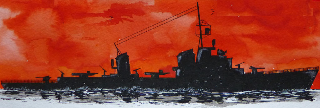 Displacement 1,461 (standard)-1,604 (construction)-1,821 (full loaded) with as dimensions 98.00 (water line) x 10,10 (waterline) x 3.30 (construction draught) metres and height side 55/735 mm. Armament consisted of 2x2-10.5cm/4.1” guns, 4x2-3cm [3.7cm/1.5”?] anti aircraft guns and 2x3-53.3/21” torpedo tubes. The propulsion consisted of 2 geared steam turbines with total horsepower of 52,000 hp allowing a speed of 19 (cruising)-37.24/37.5 (maximum) knots and a range of 1,900 nautical miles/war cruising speed/300 ton fuel oil bunker capacity. Crew numbered 160 men. Preceded by the type 41 torpedo boat, six or 9 were ordered in 1944 planned to be built by Schichau, Elbing, Germany, but never realized.