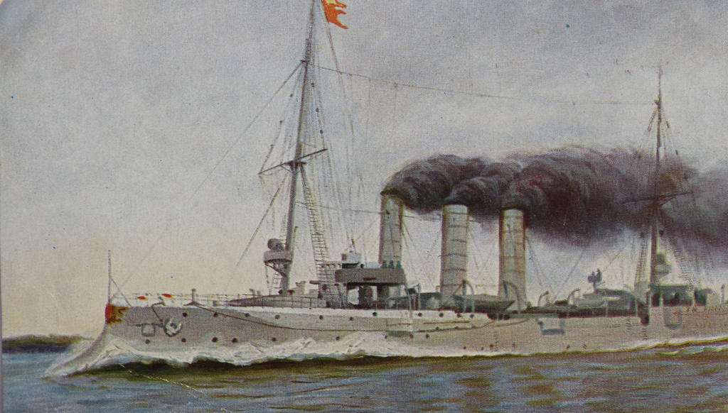 Part of Bremen-class light cruisers preceded by Gazelle-class succeeded by Könisgberg-class. Lai down under the contract name ‘K’ by AG Vulcan shipyard, Stettin, Germany in August 1902, launched on 25 July 1903, fitted out at Kiel, commissioned on 8 March 1904, training ship after 1923, stricken on 31 March 1931, became a barracks ship, was to be broken up at Bremen, Germany in 1944, sunk in a British air attack on 27 July 1944, salvaged in 1949 and broken up in 1956.