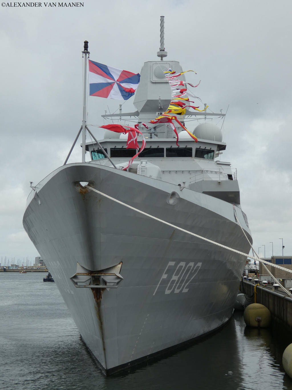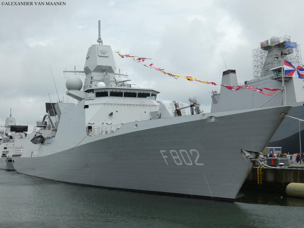 Of the Zeven Provinciën-class with as sister ships Evertsen (F805), De Ruyter (F804) and Tromp (F803). Laid down at the shipyard Damen Schelde Naval Shipbuilding on 1 September 1998, launched on 8 April 2000 and commissioned on 26 April 2002. MMSI 244730604 and call sign PD6881.