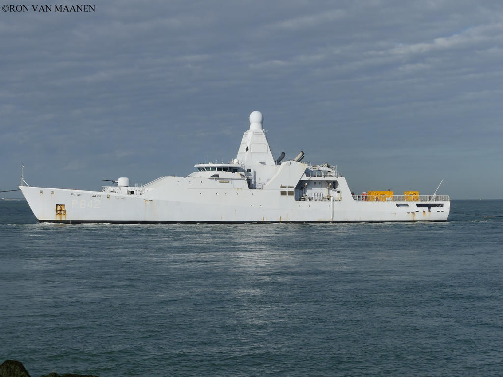 Of the Holland-class, consisting of the Holland, Zeeland, Friesland and Groningen. Laid down by the Damen Group on 26 November 2009, launched on 4 November 2010 and commissioned on 22 January 2013. Netherlands-flagged, MMSI 245838000 and call sign PAVC. Displacement 3.750 (full load) tons and as dimensions 108,4 x 16 x 4,55 metres or 355.8 x 52.6 x 14.11 feet. Speed 21,5 knots. Armament consists of 1-7,6cmm Oto Melara Super Rapid, 1-3cm Oto Melara Martin WE, 2-12,7mm/0.50 Oto Melara Hitrole NT and 6-7,62mm FN MAG machine guns and 1 NH90 helicopter.