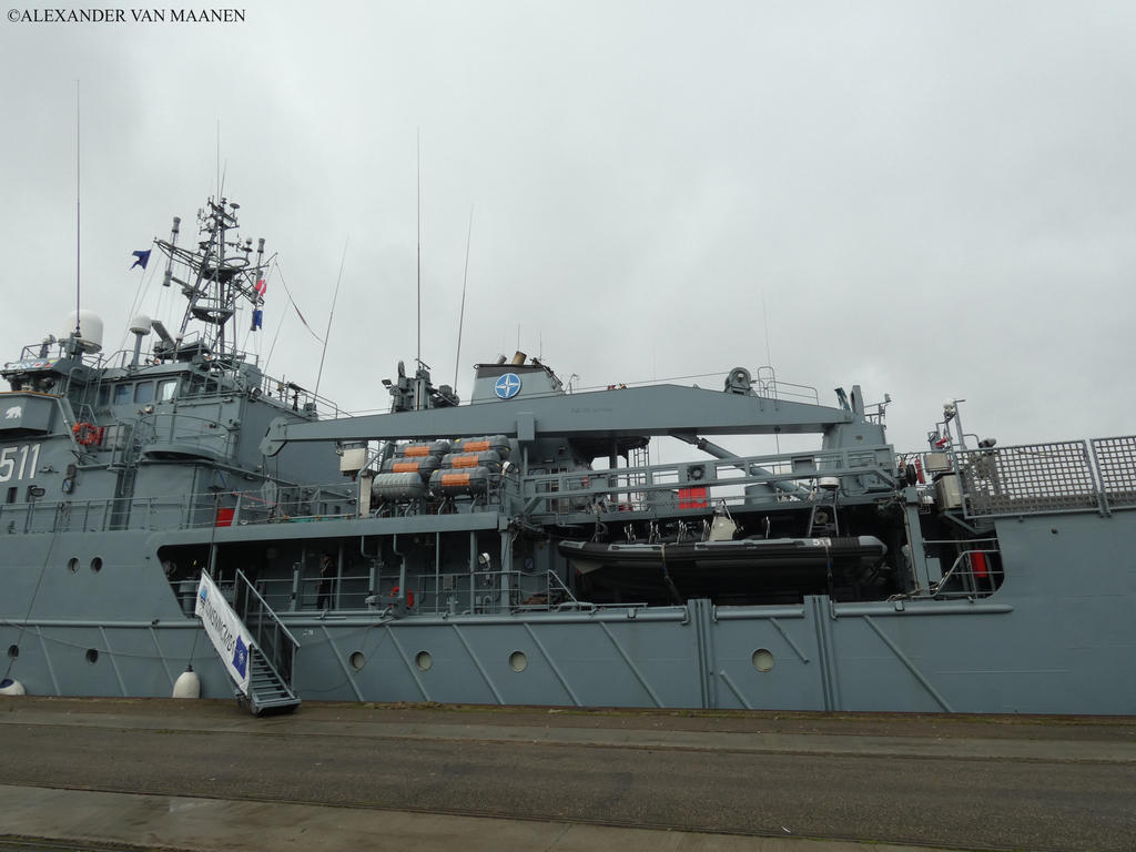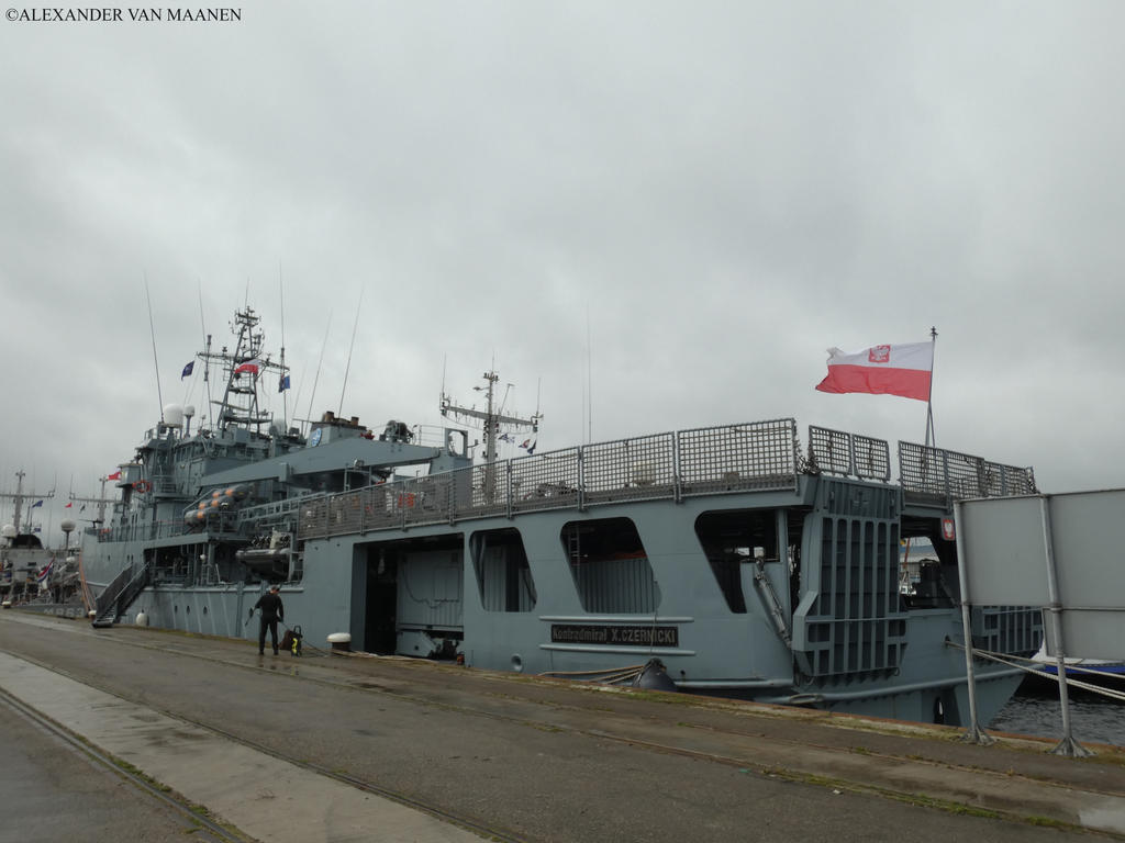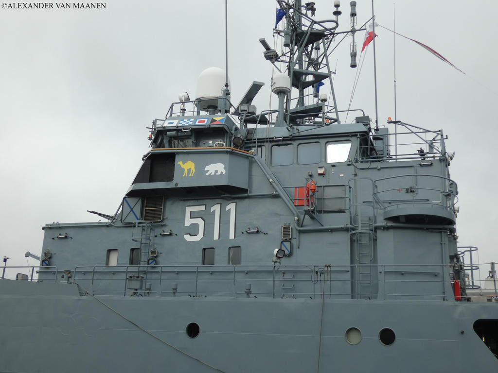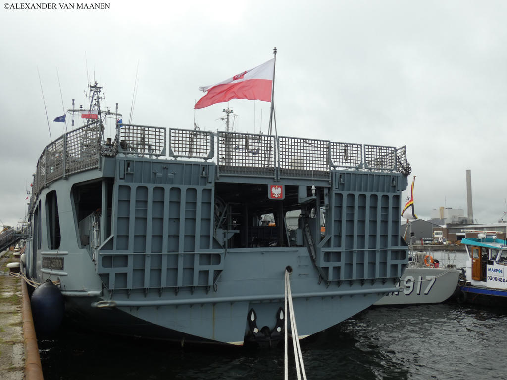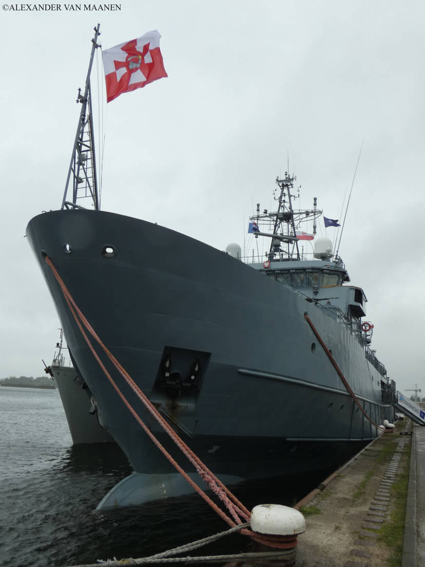 Poland-flagged, MMSI 261221000 and call sign SNWZ. Based on tet hull of the 130 class degaustation station ordered by the Russian navy, halted and completed for the Polish navy. Laid down by Northern Shipyard, Gdansk, Norway on 16 August 2000, launched on 16 November 2000 and commissioned on 1 September 2001. Displacement 2,390 tons and as dimensions 73.8 x 13.8 x 5.6 metres or 242.2 x 45.3 x 18.4 feet. Speed 14.1 knots. Armament consists of 1 short range anti aircraft complex ZU-23-2MR Wróbel-II, 1x2-2.3c/0.91" cannon and 1x2 Strela 2M missile launcher.