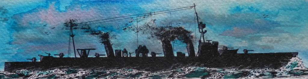 Laid down by John Brown and Company, Clydebank, Scotland on 28 June 1918, launched on 23 December 1919, completed at the Devonport Royal Dockyard in April 1926 and sold to be broken up on 11 April 1946. Part of British Emerald or E-class light cruisers, preceded by Danae or D-class, succeeded by Leander-class. Consisted of Emerald, Enterprise and Euphrates. General technical characteristics: displacement 7,580 (standard)-9,435 (full load) tons and as dimensions 173.7 x 16.6 x 5.0 metres or 570 x 54.5 x 16.5 feet. Propulsion consisted of 4 shaft Brown-Curtiss single reduction geared turbines and 8 Yarrow-type water tube boilers supplying 80,000 shp allowing a speed of 33 knots amd a range of 1,350 nautical miles/32 knots or 8,000 nautical miles/15 knots. Crew numbered 572 men. Original armour amidships 7.6 cm/3”, bow 6.4-3.8cm/2.5-1.5”, stern 5.1cm/2”, deck 2.5cm/1”. Original armament 7x1-15cm/6”Mk XII guns, 3-4” quick firing anti aircraft guns and 4-53.3cm/21” quadruple torpedo tubes.