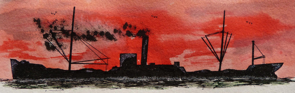 Call sign JSCB. Launched by S.P. Austin&Son, Sunderland, United Kingdom with yard number 219 on 24 May 1902, completed in August 1902, commissioned in the British Royal Navy as a collier on 20 August 1914 until 1918 when returned to owners and sunk in an American air attack on 22 January 1945. Gross tonnage 2,073 tons, under deck 1,915 tons, net tonnage 1,253 tons, deadweight 3,350 tons and as dimensions 289.0 x 43.1 x 18.7 x 7 (light)-18.3 (loaded) feet. Reciprocating propulsion, single screw, 215 nhp, coal bunker capacity 429 ton, range 4,900 nautical miles/8.5 knots and speed 8.5 (normal cruising)-10 (maximum) knots.