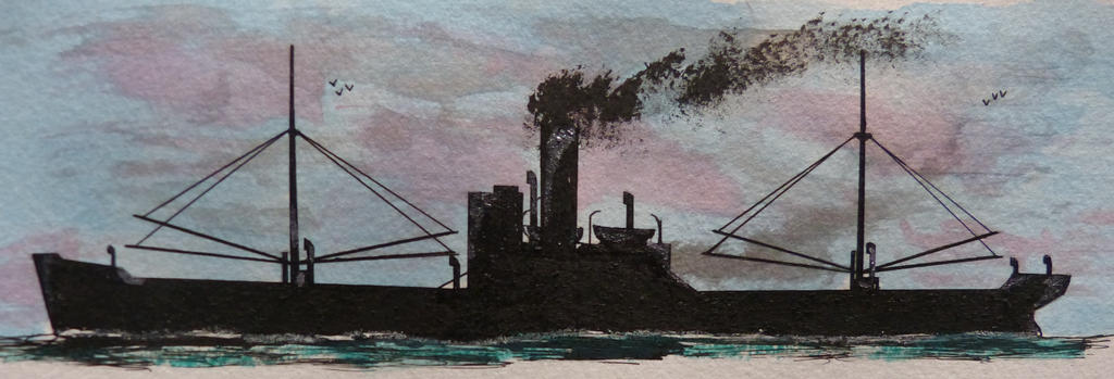 Call sign JJFK. Built by Mitsubishi Kukyogo K.K., Yokohama, Japan in 1936. Gross tonnage 3,861 tons, net tonnage 1,553 tons, deadweight 4,166 tons and as dimensions 326.4 x 44,3 x 24.0 x 8 (light)-20 (loaded) feet, Reciprocating propulsion, single screw, 284 nhp, coal bunker capacity 370 tons, range 3,800 nautical miles/10 knots and speed 10 (normal cruising)-12 (maximum) knots. IMO 4042331.