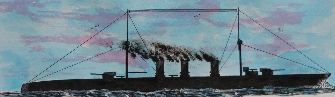 Armament 4-30.5 cm/12” B.L.R. guns, 7-12.7cm/5” quick firing guns, 4-7.62cm/3” anti acircraft guns and neither torpedo tubes or nets.