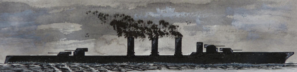 Sent on 27 August 1915 to the General Board. The design accepted for the Fiscal Year 1917 resembled this design. Dimensions 745 (waterline) x 100 (waterline) x 30.5 feet. Speed 30 knots. Range 10 knots/12,000 nautical miles. Horsepower 56,300 ehp/30 knots. Turbine propulsion. Number of boiler rooms 9. Armament 4x2-35.56cm/14” B.L.R. guns, 12-15.4cm/6” quick firing guns, 4-7.62cm/3” anti aircraft guns and 4-53.34cm/21” torpedo tubes. Armour: main side belt 20’(extreme width)-8’6” (depth below waterline)-5” (thickness). Heavy part barbettes 10”. Turrets 12” (port)-8” (sides)-5” (top)-5” (rear). Conning tower proper 12”, heavy part tube 8”. Uptake protection 8”. Splinter deck 2”. Total thickness protective deck 3”.