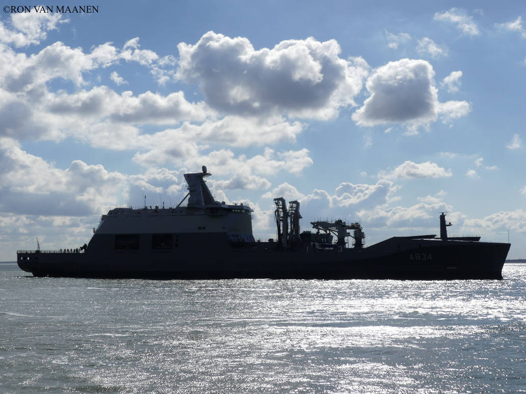 Netherlands-flagged, IMO 4763959 and MMSI 244936000. Replacement of the Hr.Ms. Amsterdam. Ordered on 19 February 2020, laid down by Damen Naval at Galati, Romania on 2 June 2021, in six modules built, middle hull part (modules 2-3) with a length of 90.5 metres, module 1 was stern, module 4 bow and module 5 the fore part of the superstructure launched on 11 April 2022, departed on 16 November 2024 to the Netherlands which was at the same time her sea trial, arrived at Vlissingen, Netherlands on 13 December 2024 and christened on 22 February 2025.